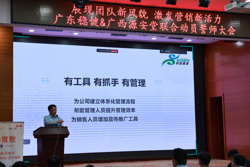 1010日下午,廣東穩(wěn)健藥業(yè)有限公司與廣西源安堂藥業(yè)有限公司聯(lián)合舉辦的展現(xiàn)團(tuán)隊(duì)新風(fēng)貌,激發(fā)營銷新活力營銷動(dòng)員誓師大會(huì)在廣州金城賓館隆重舉行。本次會(huì)議邀請(qǐng)了源安堂營銷中心總經(jīng)理?xiàng)羁?、副總?jīng)理張總,營銷總監(jiān)黃總,以及省區(qū)經(jīng)理陳明和產(chǎn)品經(jīng)理朱霖參會(huì)。會(huì)議聚焦團(tuán)隊(duì)建設(shè)、戰(zhàn)略部署與業(yè)務(wù)創(chuàng)新,通過系列議程推動(dòng)內(nèi)部協(xié)同與能力提升,為四季度及未來的市場(chǎng)規(guī)劃與拓展注入強(qiáng)勁動(dòng)力。會(huì)議圍繞戰(zhàn)略部署、工具賦能、破局思考、板塊聯(lián)動(dòng)、思辨賦能、守正拓新六大方向展開深度分享與討論。